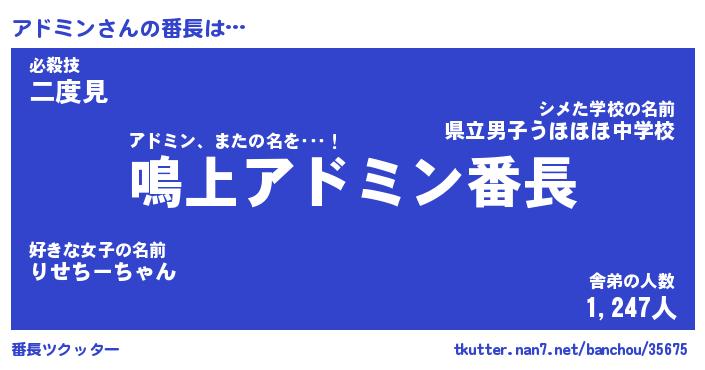 | ファンタジー風あだ名 | 『アドフェル』『エターナルアドミンー』 |