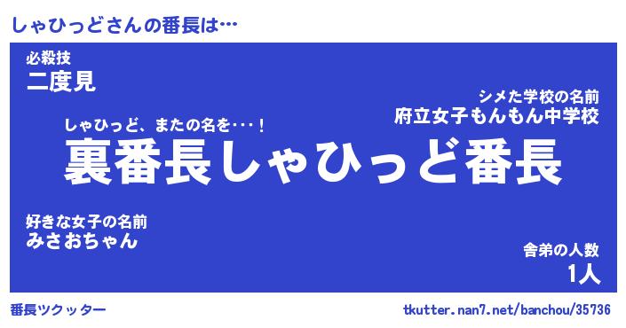 | ヘコむあだ名 | 『しゃもー』『酢こんぶ』『しゃっぺ』 |