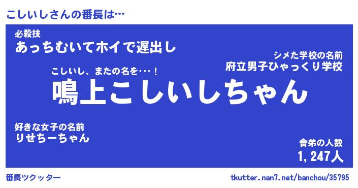 | 意味不明あだ名 | 『ペロリンこしいし』『永久保存こしいし』 |