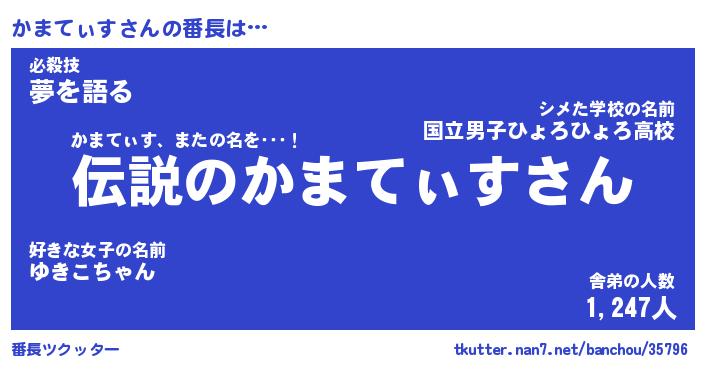 | 肩書あだ名 | 『かまてぃす店長』『かまてぃす大統領』 |