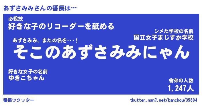 | 肩書あだ名 | 『あずさみみ社長令嬢』『あずさみみ教頭』 |