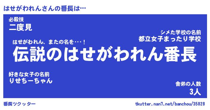 | 肩書あだ名 | 『はせがわれん社長』『はせがわれん班長』 |