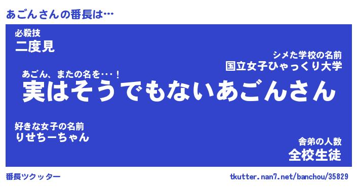 | 2回繰り返すあだ名 | 『あごあご』『ああごご』『ぬれぬれ』 |