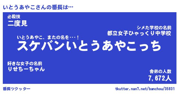 | ヒーロー風カッコイイあだ名 | 『スーパーイトウアヤコ』『炎刃騎士イト』 |