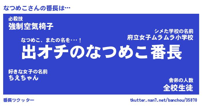 | 意味不明あだ名 | 『ペロリンなつめこ』『永久保存なつめこ』 |
