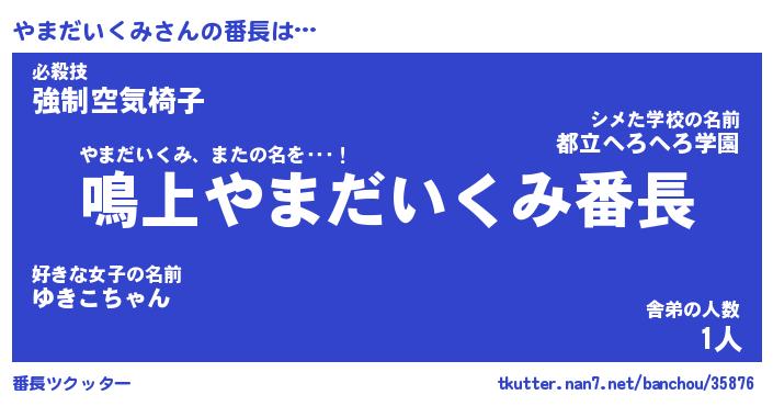 | 肩書あだ名 | 『やまだいくみ店長』『やまだいくみ団長』 |