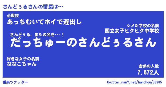 | 伝説のあだ名 | 『伝説のスナイパーさんどぅる』 |
