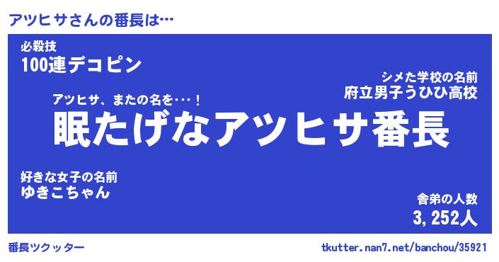 | 意味不明あだ名 | 『ペロリンアツヒサ』『永久保存アツヒサ』 |