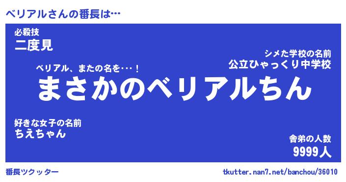 | 意味不明あだ名 | 『ペロリンベリアル』『永久保存ベリアル』 |