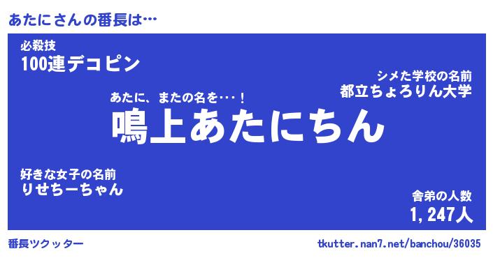 | ヒーロー風カッコイイあだ名 | 『スーパーアタニ』『ウルトラあたにマン』 |