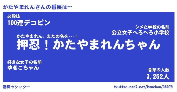 | ヒーロー風カッコイイあだ名 | 『スーパーカタヤマレン』『天弓騎士カタ』 |