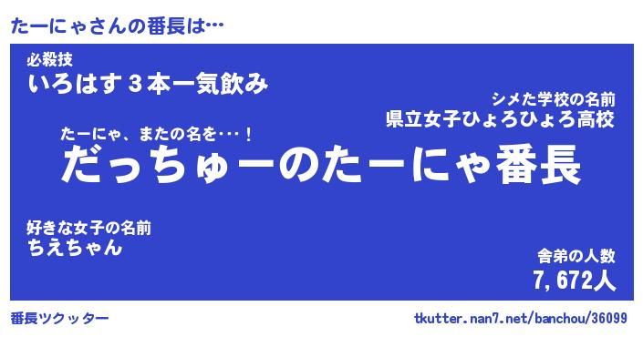 | 肩書あだ名 | 『たーにゃ社長』『たーにゃ大統領』 |