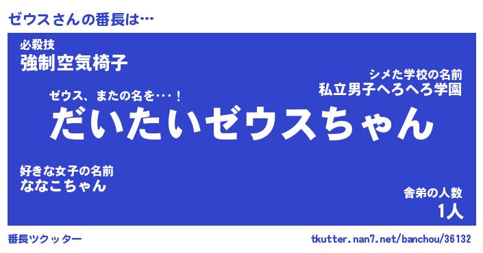 | ファンタジー風あだ名 | 『ゼウフェル』『エターナルゼウスー』 |
