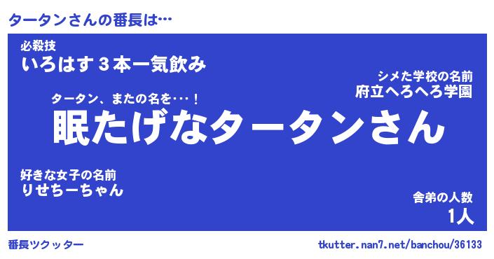 | ヘコむあだ名 | 『ターにー』『なまこ酢』『ターを』 |