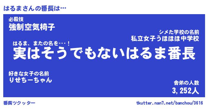 | ヒーロー風カッコイイあだ名 | 『スーパーハルマ』『ウルトラはるまマン』 |
