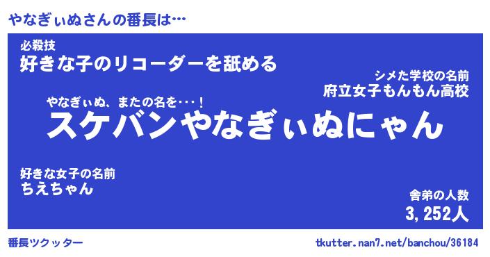 | ヒーロー風カッコイイあだ名 | 『スーパーヤナギィヌ』『幻影騎士ヤナ』 |