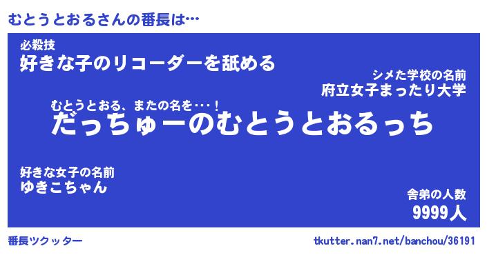 | ヘコむあだ名 | 『むともー』『なまこ酢』『むとお』 |