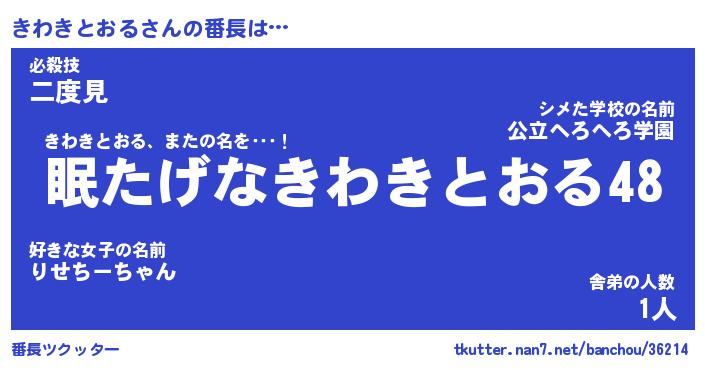 | ヒーロー風カッコイイあだ名 | 『スーパーキワキトオル』『天弓騎士キワ』 |