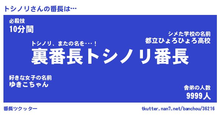 | ヒーロー風カッコイイあだ名 | 『スーパートシノリ』『天弓騎士トシ』 |