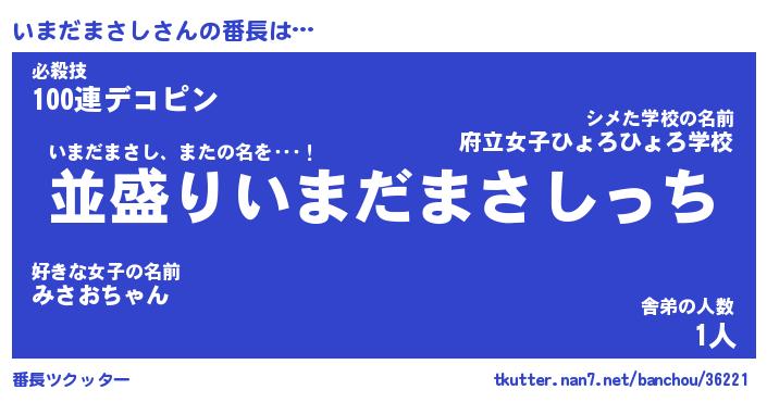 | ヘコむあだ名 | 『いまにゅー』『つくし』 |