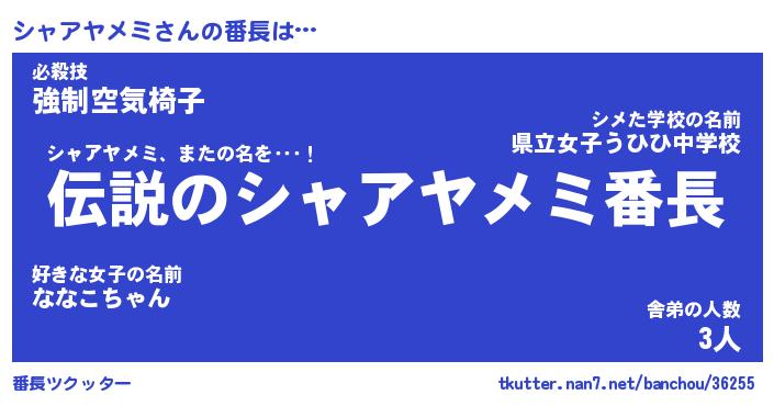 | ポケモン風あだ名 | 『シャチュウ』『シャアダネ』 |