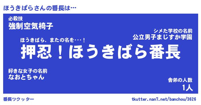 | ヒーロー風カッコイイあだ名 | 『スーパーホウキバラ』『銀牙騎士ホウ』 |