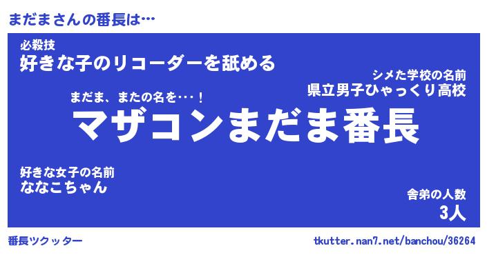 | ピコ太郎風あだ名 | 『マコ三郎』『ピマ史郎』『マダ二郎』 |