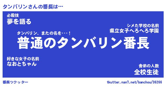 | ファンタジー風あだ名 | 『タンフェル』『エターナルタンバリンー』 |