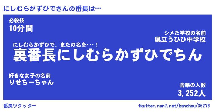 | 男性向けラノベタイトル風あだ名 | 『ニシムラカズヒデアートオンライン』 |