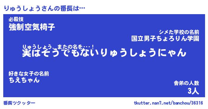 | 2回繰り返すあだ名 | 『りゅりゅ』『りりゅゅ』『おらおら』 |