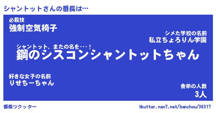 | 男性向けラノベタイトル風あだ名 | 『シャントットアートオンライン』 |