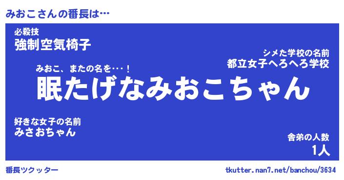 | 肩書あだ名 | 『みおこ社長』『みおこ大統領』 |