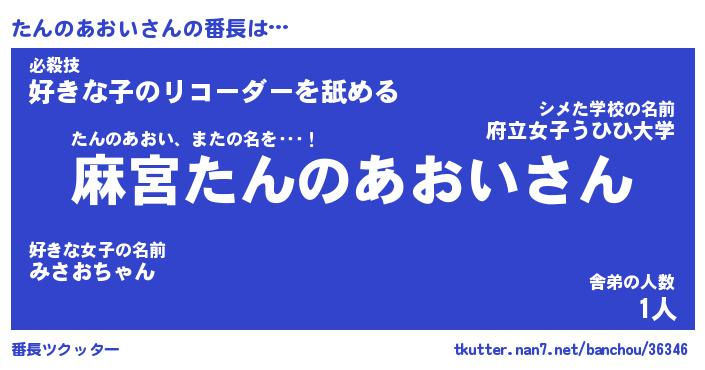 | 肩書あだ名 | 『たんのあおい社長』『たんのあおい団長』 |
