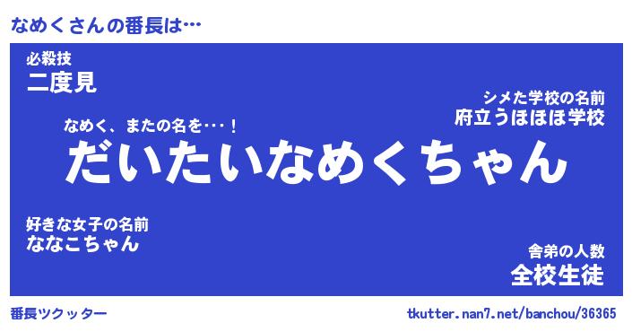 | ファンタジー風あだ名 | 『ナメフェル』『エターナルナメクー』 |