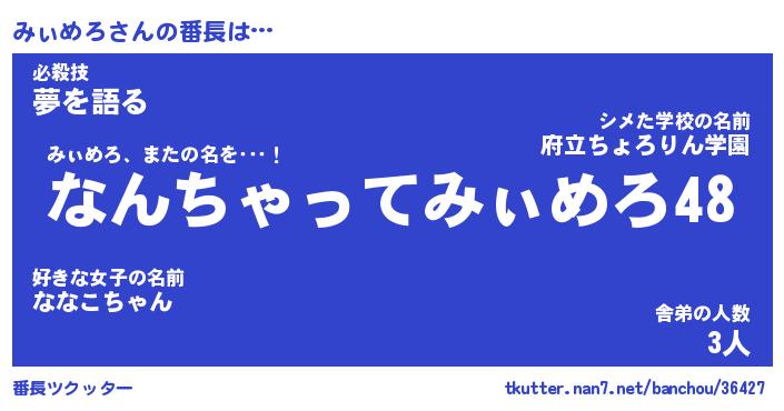 | 男性向けラノベタイトル風あだ名 | 『みぃめろの憂鬱』 |