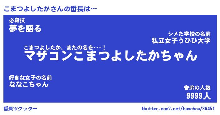 | ポケモン風あだ名 | 『コマチュウ』『コマツダネ』 |