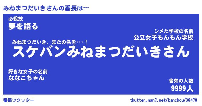 | 肩書あだ名 | 『みねまつだいき御曹司』 |
