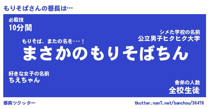 | 伝説のあだ名 | 『伝説のスナイパーもりそば』 |