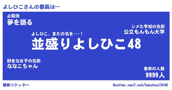 | ヒーロー風カッコイイあだ名 | 『スーパーヨシヒコ』『銀牙騎士ヨシ』 |