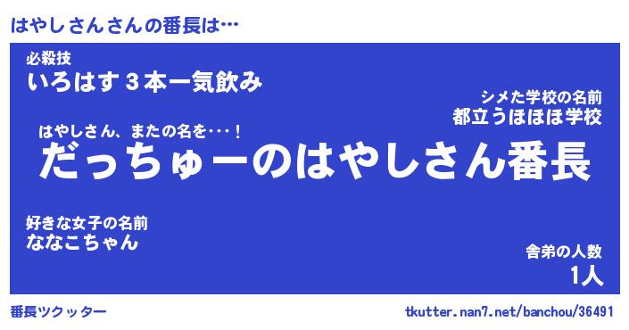 | ヘコむあだ名 | 『はやにゅー』『なまこ酢』『はやを』 |