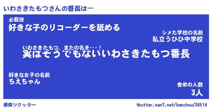 | 肩書あだ名 | 『いわさきたもつ店長』 |