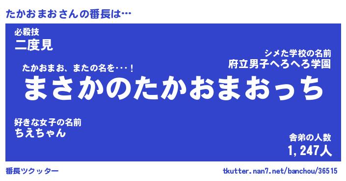 | 伝説のあだ名 | 『伝説のスナイパーたかおまお』 |