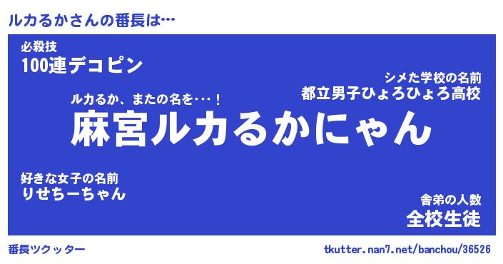 | 肩書あだ名 | 『ルカるか店長』『ルカるか総理大臣』 |