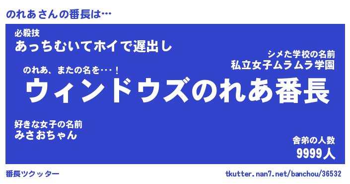 | 2回繰り返すあだ名 | 『のれのれ』『ののれれ』『ねばねば』 |