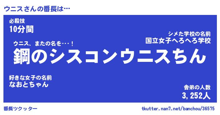 | ヘコむあだ名 | 『ウニもー』『牛乳』『ウニ太郎』 |