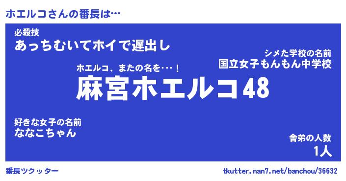 | ヘコむあだ名 | 『ホエもー』『酢こんぶ』『ホエっ子』 |