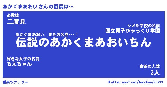 | ヒーロー風カッコイイあだ名 | 『スーパーアカクマアオイ』 |