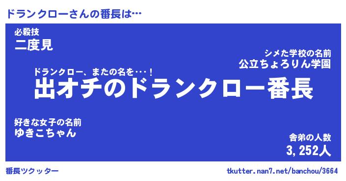 | 男性向けラノベタイトル風あだ名 | 『ドランクローの憂鬱』 |