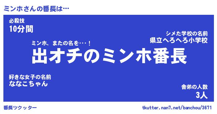 | ファンタジー風あだ名 | 『ミンフェル』『エターナルミンホー』 |