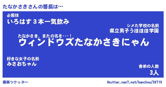 | ファンタジー風あだ名 | 『タナフェル』『エターナルタナカサキー』 |
